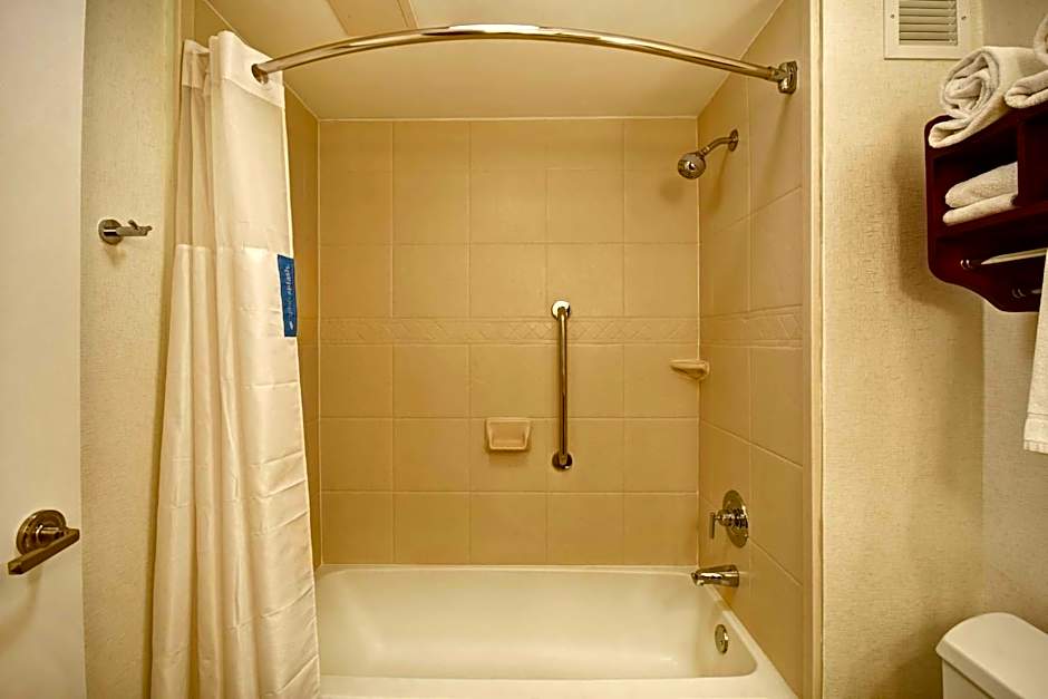 This spacious nonsmoking room features a 32-inch TV, work desk and free WiFi. Tea and coffee making facilities are also offered in this room. The private bathroom features a curved shower rod for added light and space. There are also grab bars in the tub/shower.